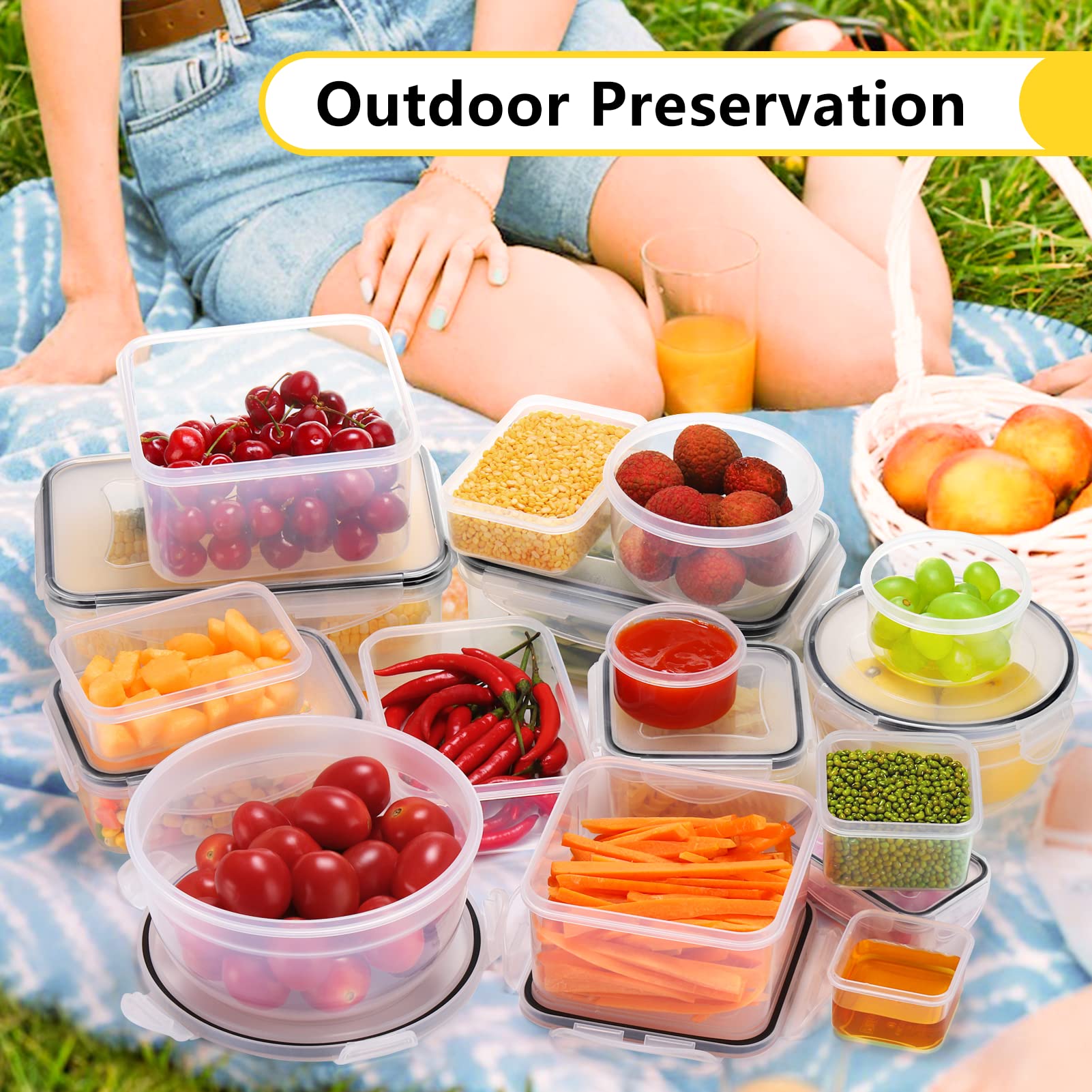 - Versatile Shapes and Sizes: With 20 airtight food storage containers in 2 shapes, including 6 rectangle containers (1X 50.7OZ, 1X 33.8 OZ, 2X 16.9 OZ, 2X 8.1 OZ), 8 round containers (2X 40.6 OZ, 2X 23.7 OZ, 2X 13.5 OZ, 2X 6.1 OZ), and 6 round sauce cups (3X 2 OZ, 3X1 OZ), our set offers a variety of sizes to suit your storage needs. From 8 OZ to 51 OZ, we have you covered